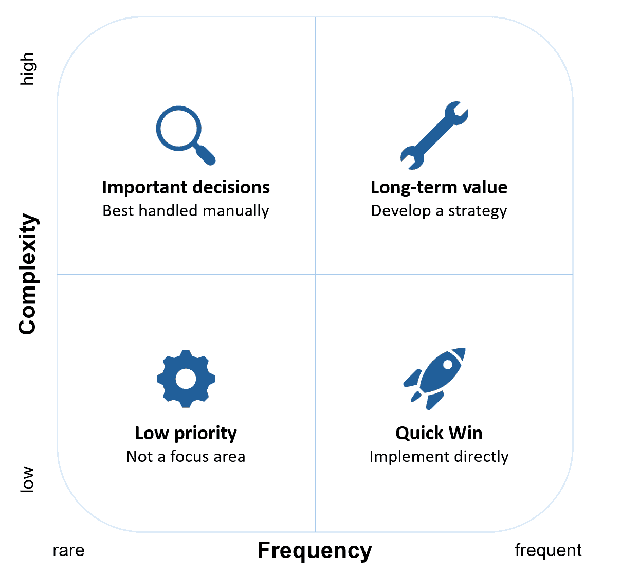 Häufig & schwer: Prozesse, die komplex sind, aber oft vorkommen: Hier braucht es eine langfristige Strategie