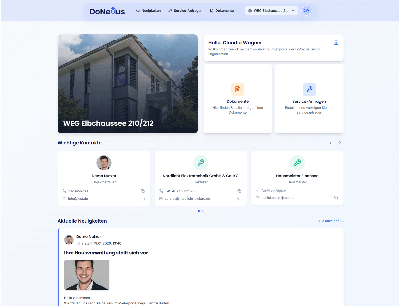 Alle relevanten Informationen können einfach und zentral über DoNexus gestreut werden. Kein Medienbruch mehr. Egal ob E-Mail, Telefon, WhatsApp oder Portal.